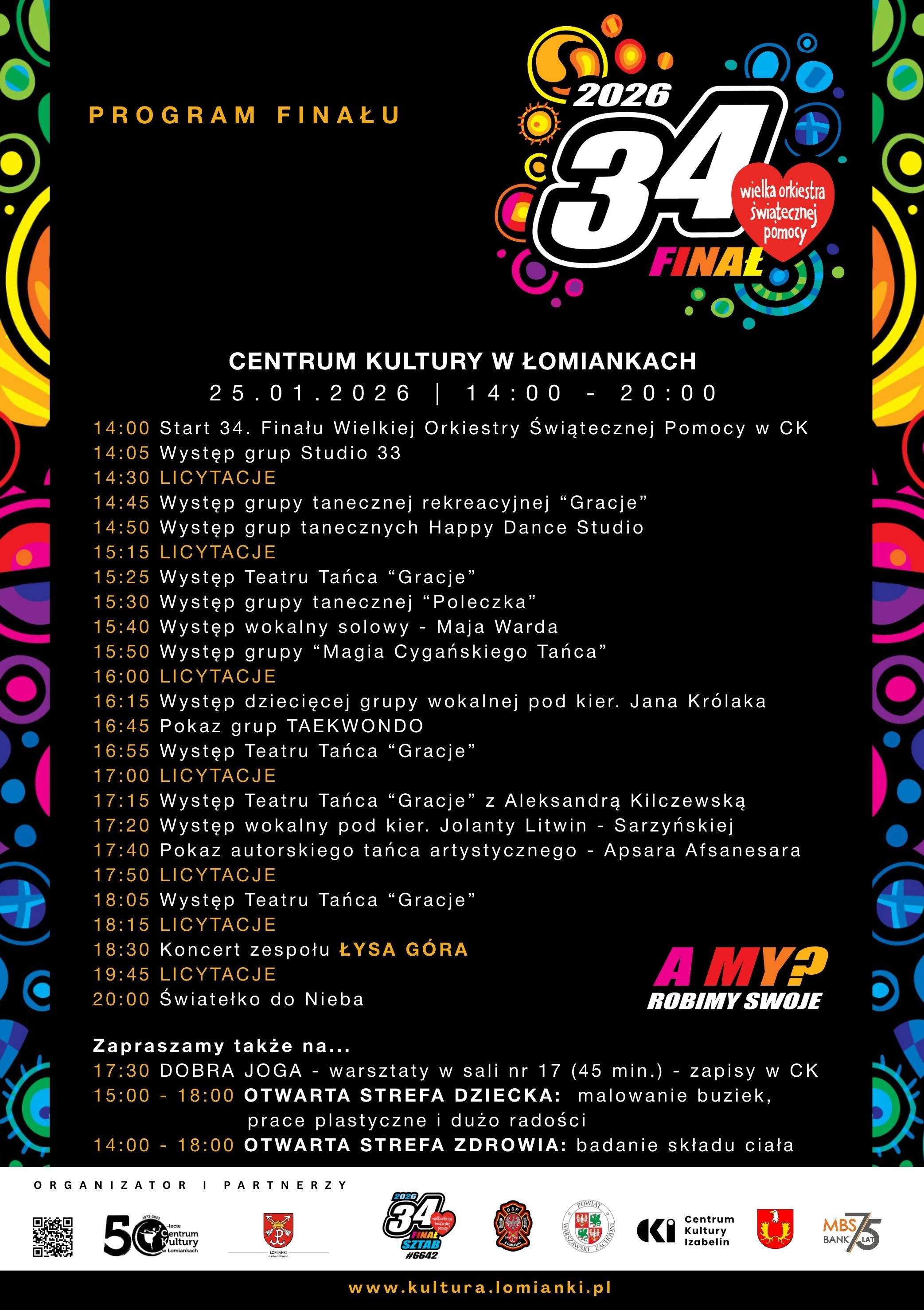 34. Finał Wielkiej Orkiestry Świątecznej Pomocy w Centrum Kultury w Łomiankach!