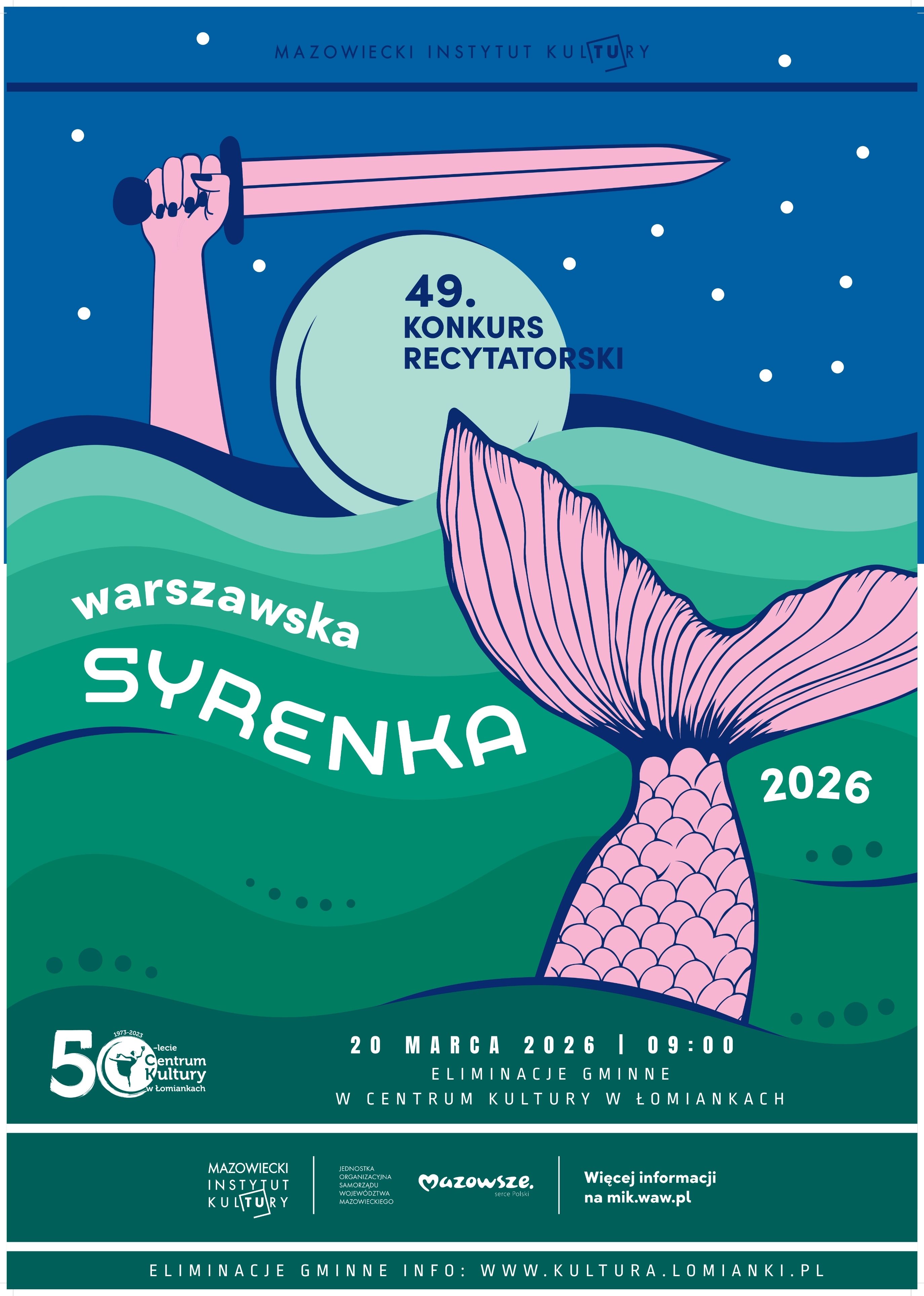 Rusza 49. edycja Konkursu Recytatorskiego Warszawska Syrenka. Mazowiecki Instytut Kultury do udziału zaprasza dzieci i młodzież ze szkół podstawowych z Warszawy i województwa Mazowieckiego. Istotą Konkursu jest pobudzanie aktywności artystycznej, ujawnianie młodych talentów recytatorskich, ale również wyrobienie nawyku czytania, rozwój czytelnictwa i popularyzacja literatury.